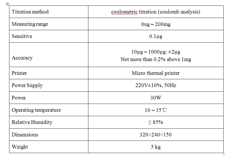 Ⅱ. Technical parameter of the Karl Fischer Moisture Analyzer
